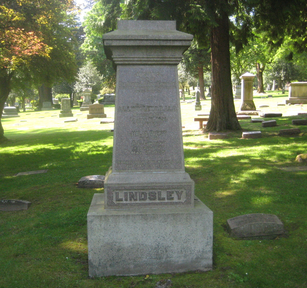 Aaron Ladner Lindsley is buried at River View Cemetery, Portland, Oregon.