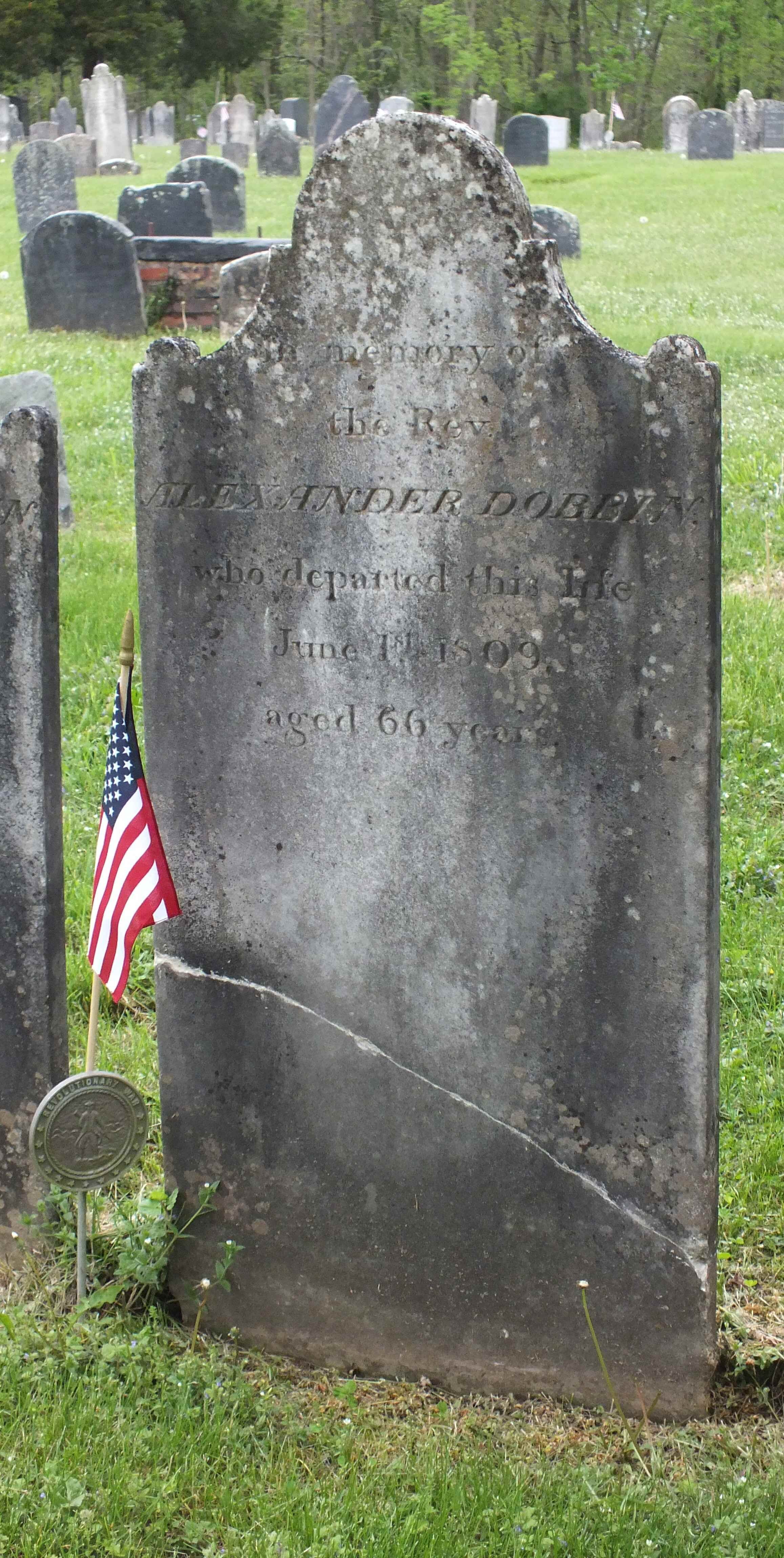 Alexander Dobbin is buried at Lower Marsh Creek Presbyterian Cemetery, Gettysburg, Pennsylvania.The Alexander Dobbin House in Gettysburg, Pennsylvania is an historic home which now serves as a tavern. “In 1776, Mr. Dobbin erected the stone house which was used for a dwelling, academy and church. It is the oldest Covenanter church now standing, and was erected while the Declaration of Independence was being signed. No doubt the dedicatory services were held during the meeting of the Reformed Presbytery in this place, August 26, 1776, at which time the sacrament of the Lord’s Supper was dispensed.” — W.M. Glasgow, “Covenanters at Gettysburg” (1888)
