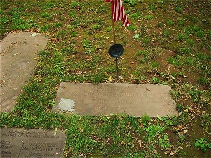 Alexander MacWhorter is buried at First Presbyterian Churchyard Memorial Garden, Newark, New Jersey.Old First Presbyterian Church in Newark, New Jersey. Alexander MacWhorter served as pastor from 1759 to 1807.