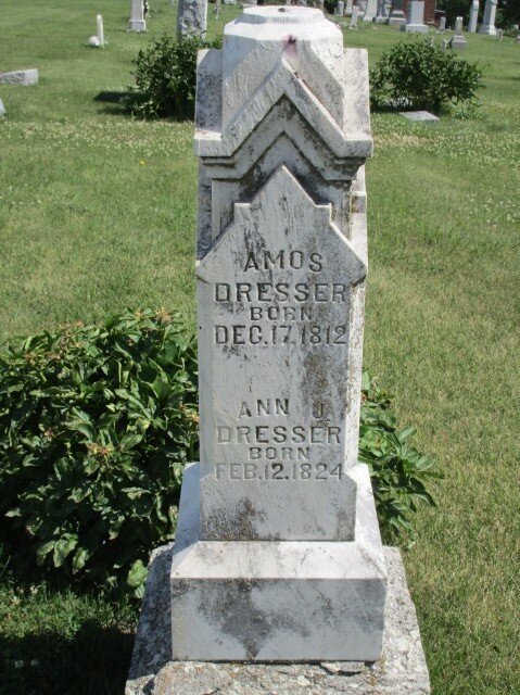 Amos Dresser is buried at Camp Creek Cemetery, Otoe County, Nebraska.