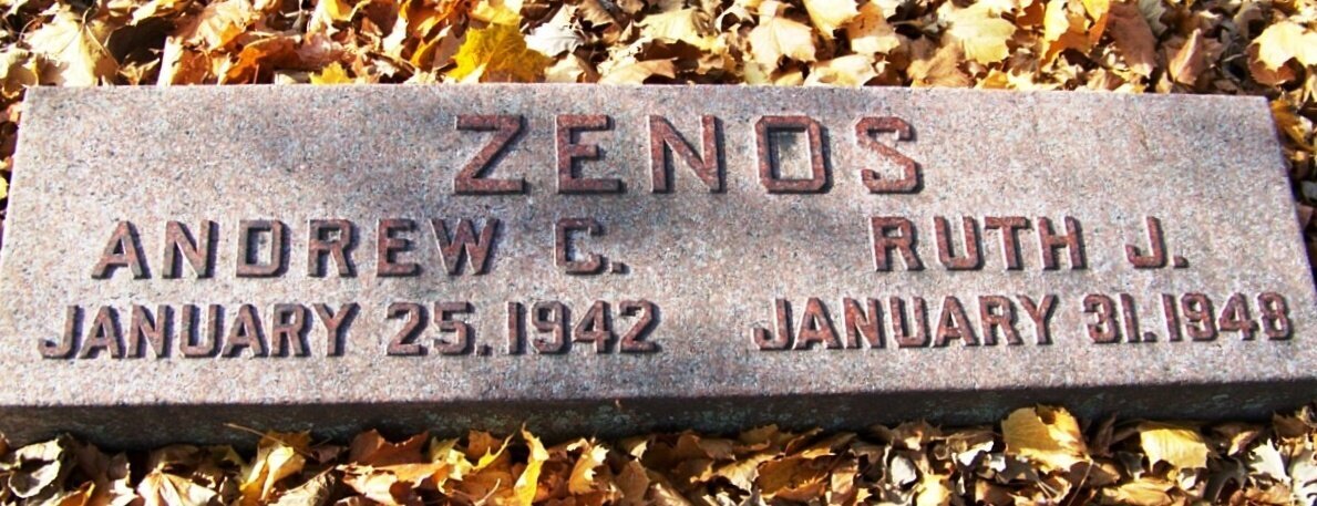 Andrew Constantinides Zenos is buried at Graceland Cemetery, Chicago, Illinois.