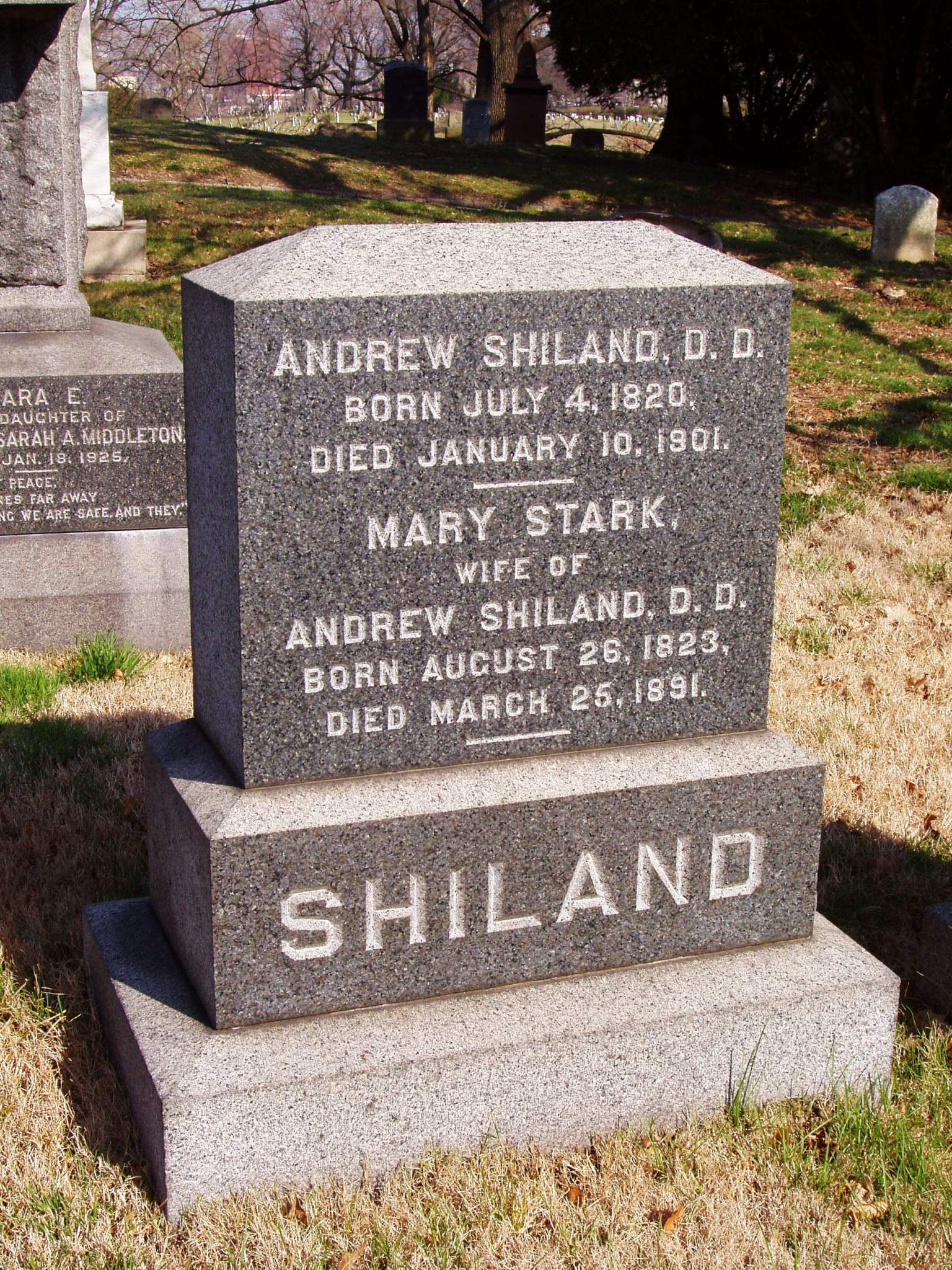 Andrew Shiland is buried at Green-Wood Cemetery, Brooklyn, New York.