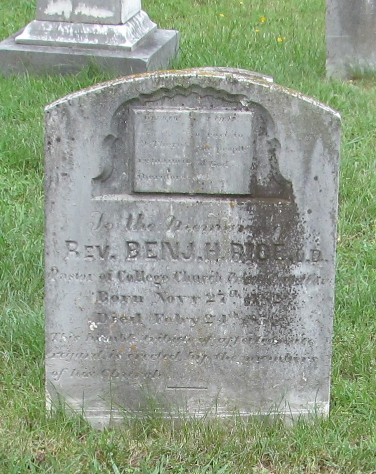 Benjamin Holt Rice is buried at Union Theological Seminary Cemetery, Hampden Sydney, Virginia.