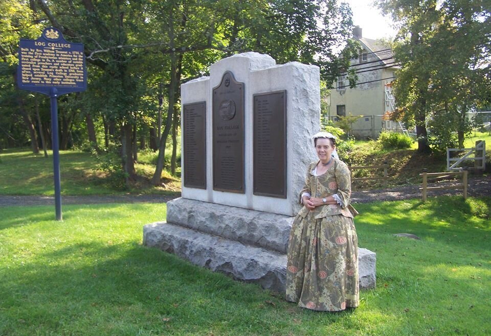 Wendy Wirsch of the William Tennent House Association portrays Mrs. Catherine Tennent at the Log College Monument (courtesy of Wendy Wirsch).