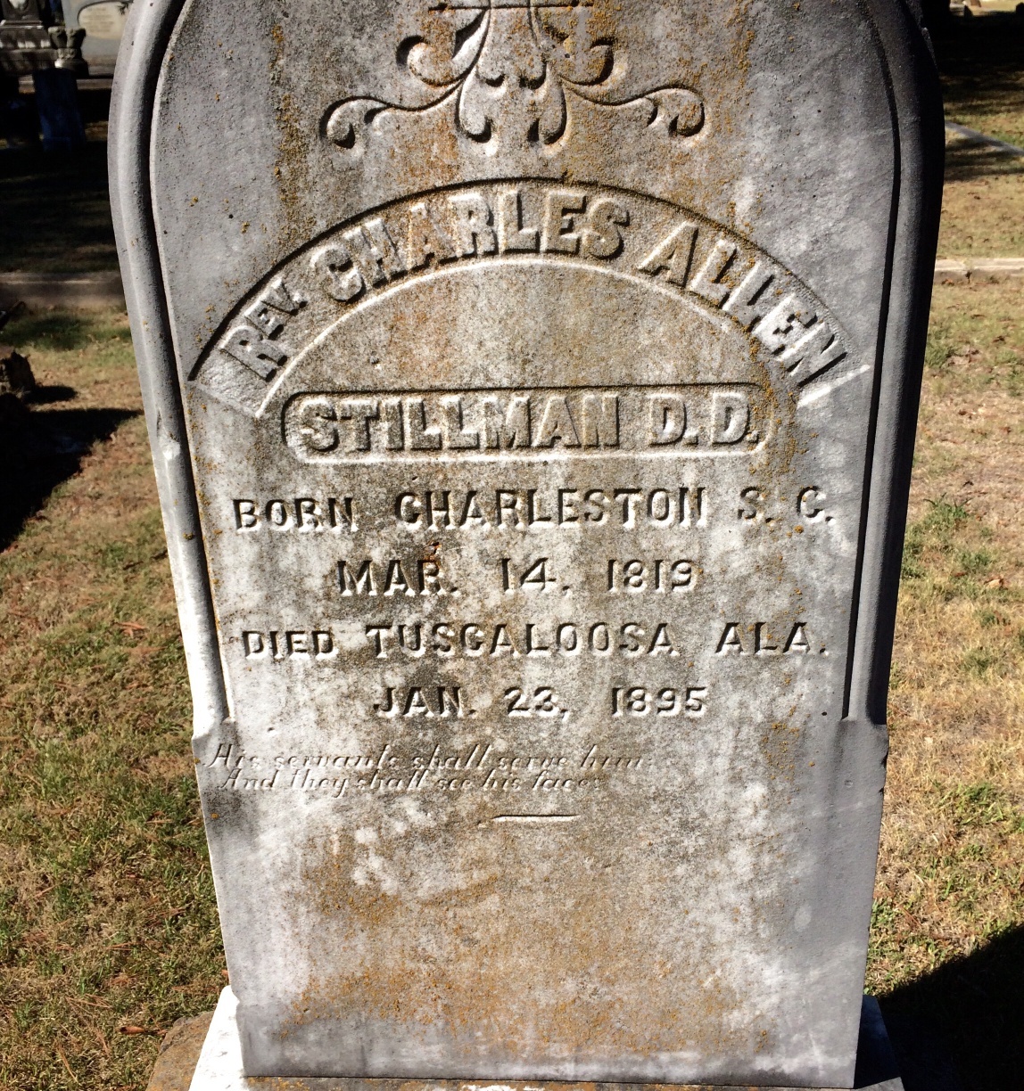 Charles Allen Stillman is buried at Greenwood Cemetery, Tuscaloosa, Alabama.