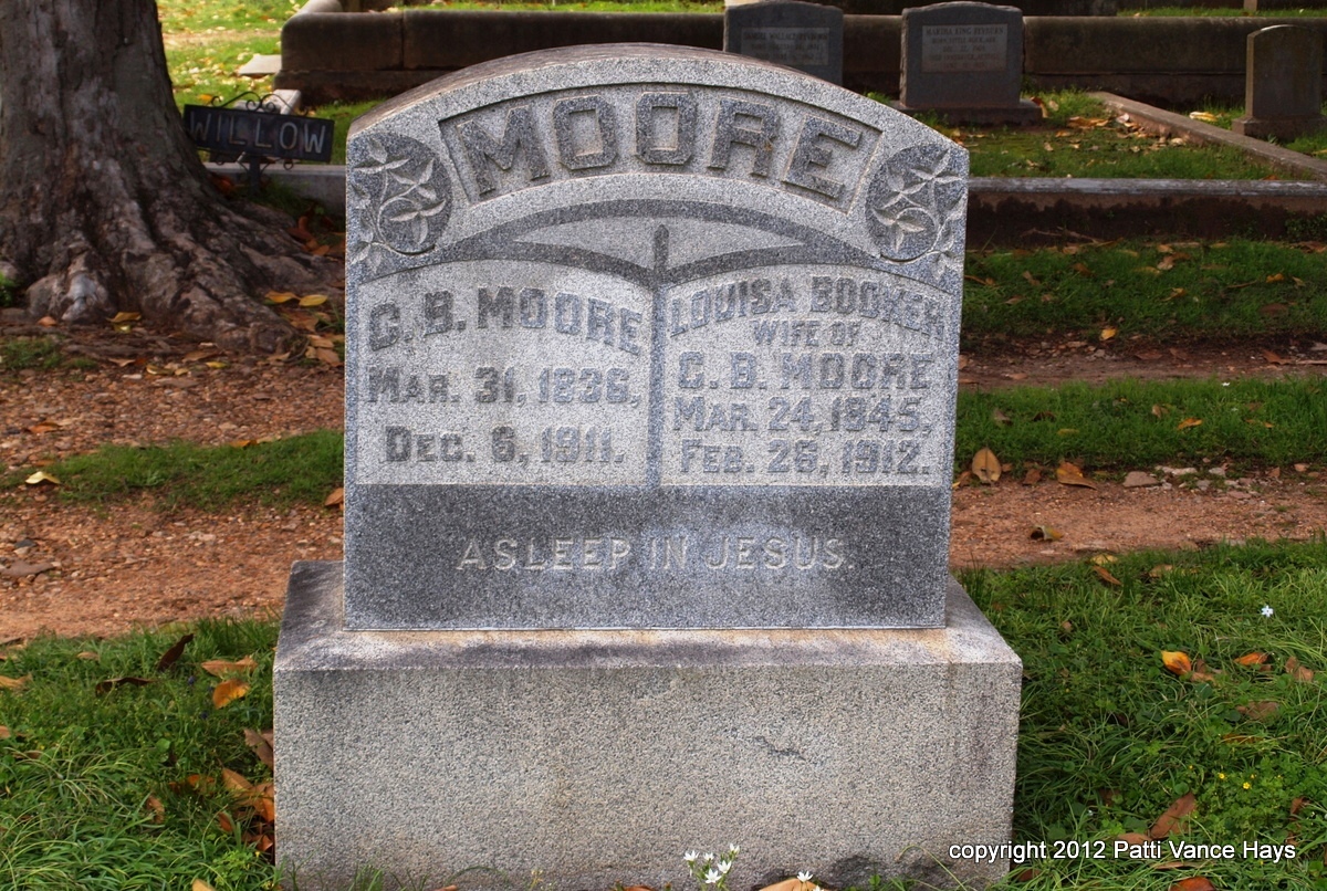 Charles Beatty Moore is buried at Mount Holly Cemetery, Little Rock, Arkansas.