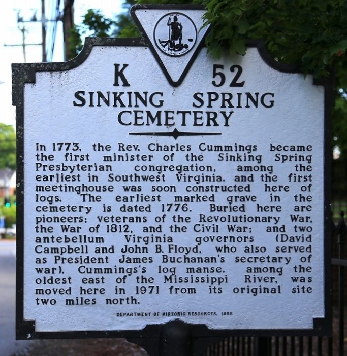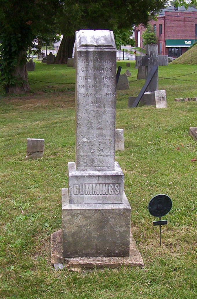 Charles Cummings is buried at the Sinking Spring Cemetery, Abingdon, Virginia.Historical marker located in Fincastle County, Virginia.The Parson Cummings Cabin, originally located two miles, was restored and relocated to its present location near the Sinking Spring Cemetery.