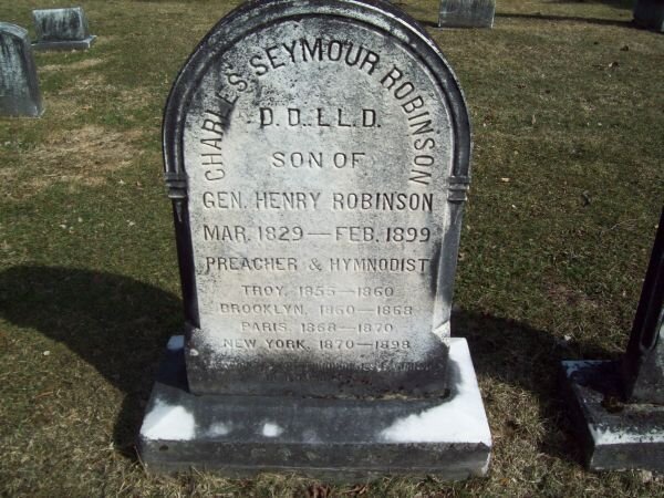 Charles Seymour Robinson is buried at Old Bennington Cemetery, Bennington, Vermont.