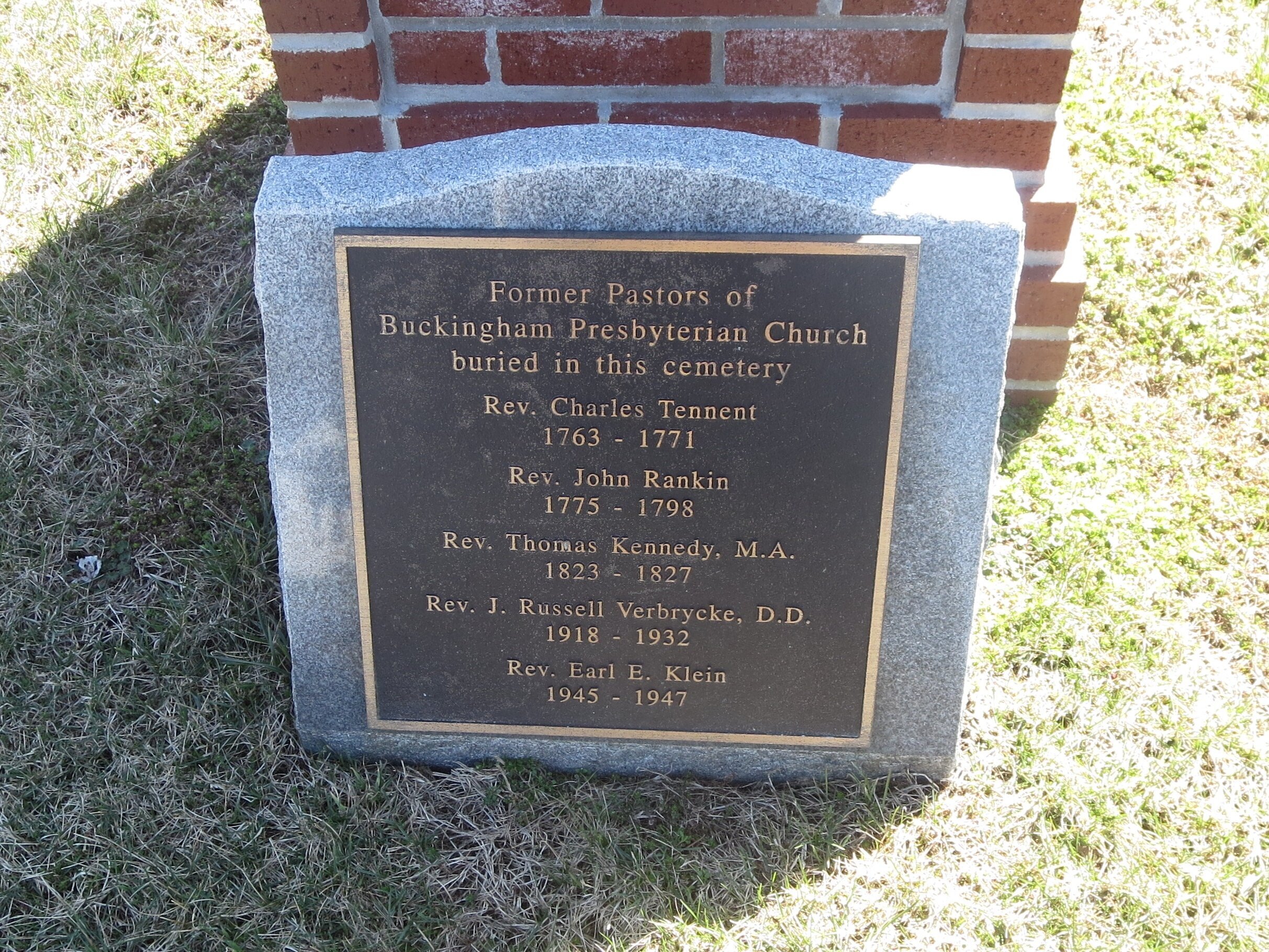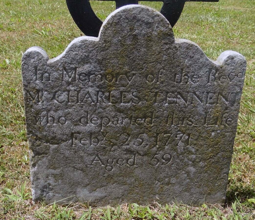 Charles Tennent is buried at Buckingham Cemetery, Berlin, Maryland.Charles Tennent served as pastor of Buckingham Presbyterian Church in Berlin, Maryland from 1763 until his death in 1771.Charles Tennent ministered at the White Clay Creek Presbyterian Church in Newark, Delaware for 26 years.