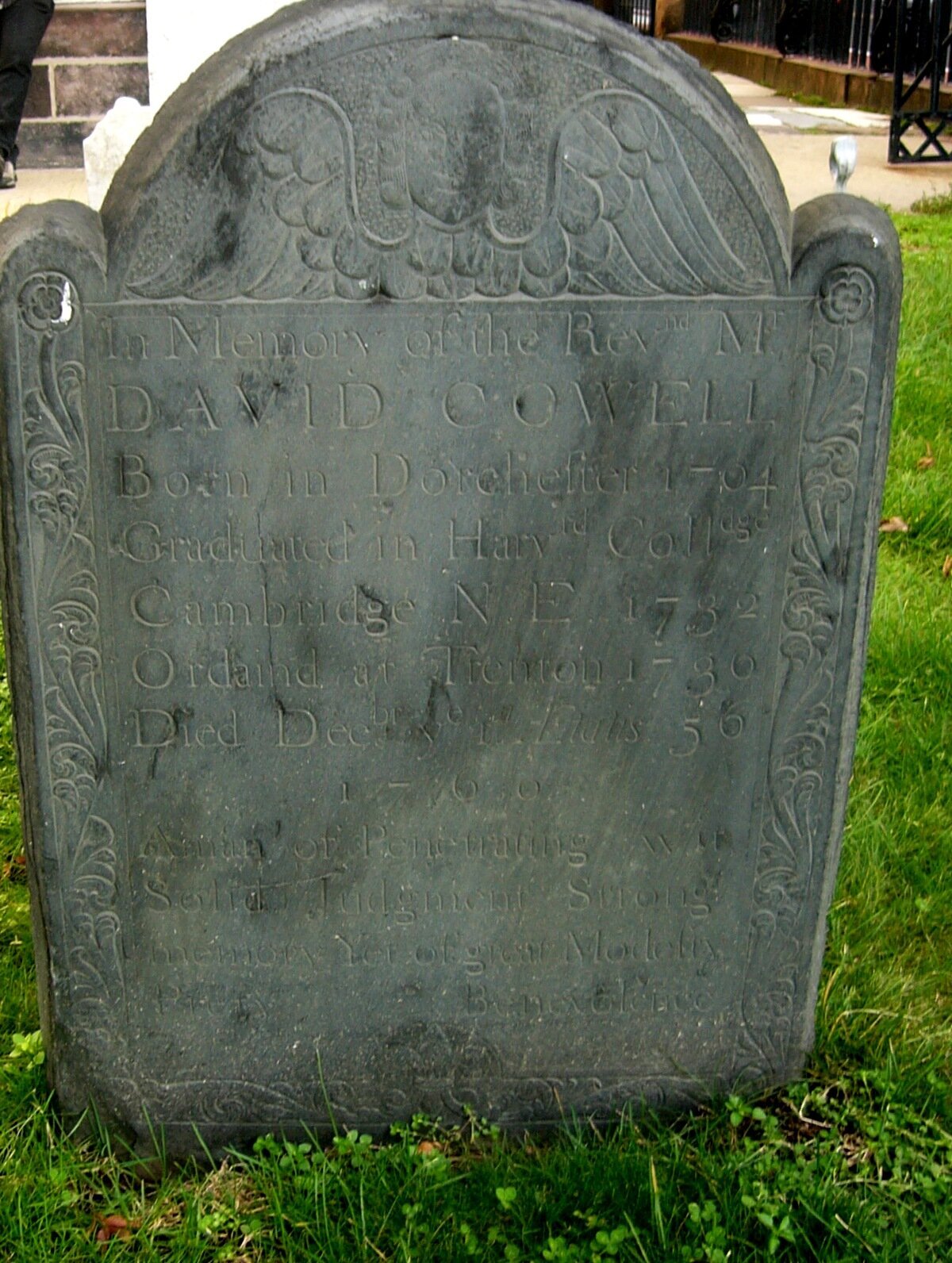 David Cowell is buried at the First Presbyterian Churchyard, Trenton, New Jersey.