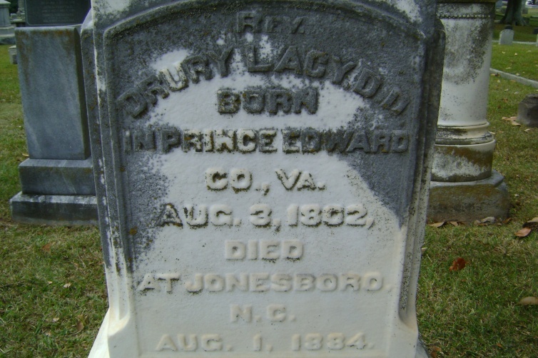 Drury Lacy, Jr. is buried at Oakwood Cemetery, Raleigh, North Carolina.