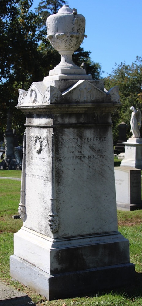 George Washington Musgrave is buried at Woodlands Cemetery, Philadelphia, Pennsylvania.