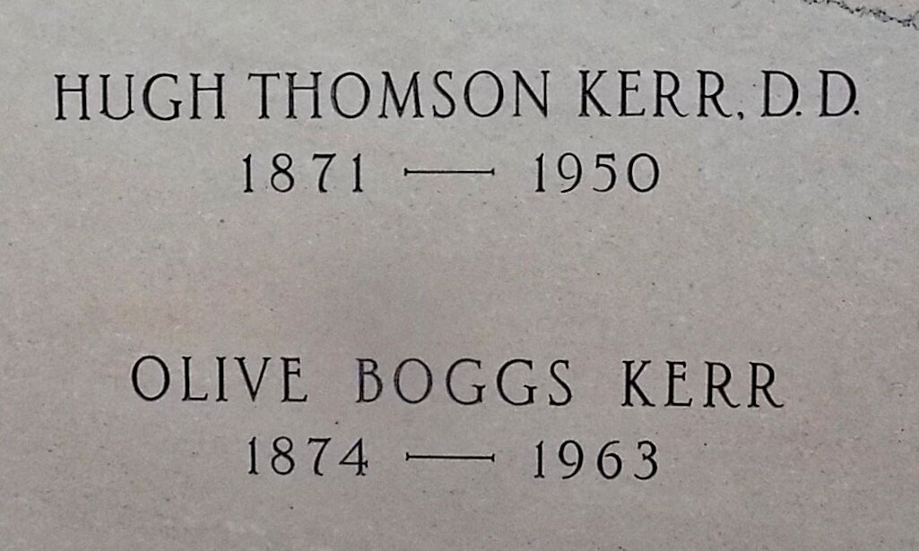 Hugh Thomson Kerr, Sr. is buried at Homewood Cemetery, Pittsburgh, Pennsylvania.