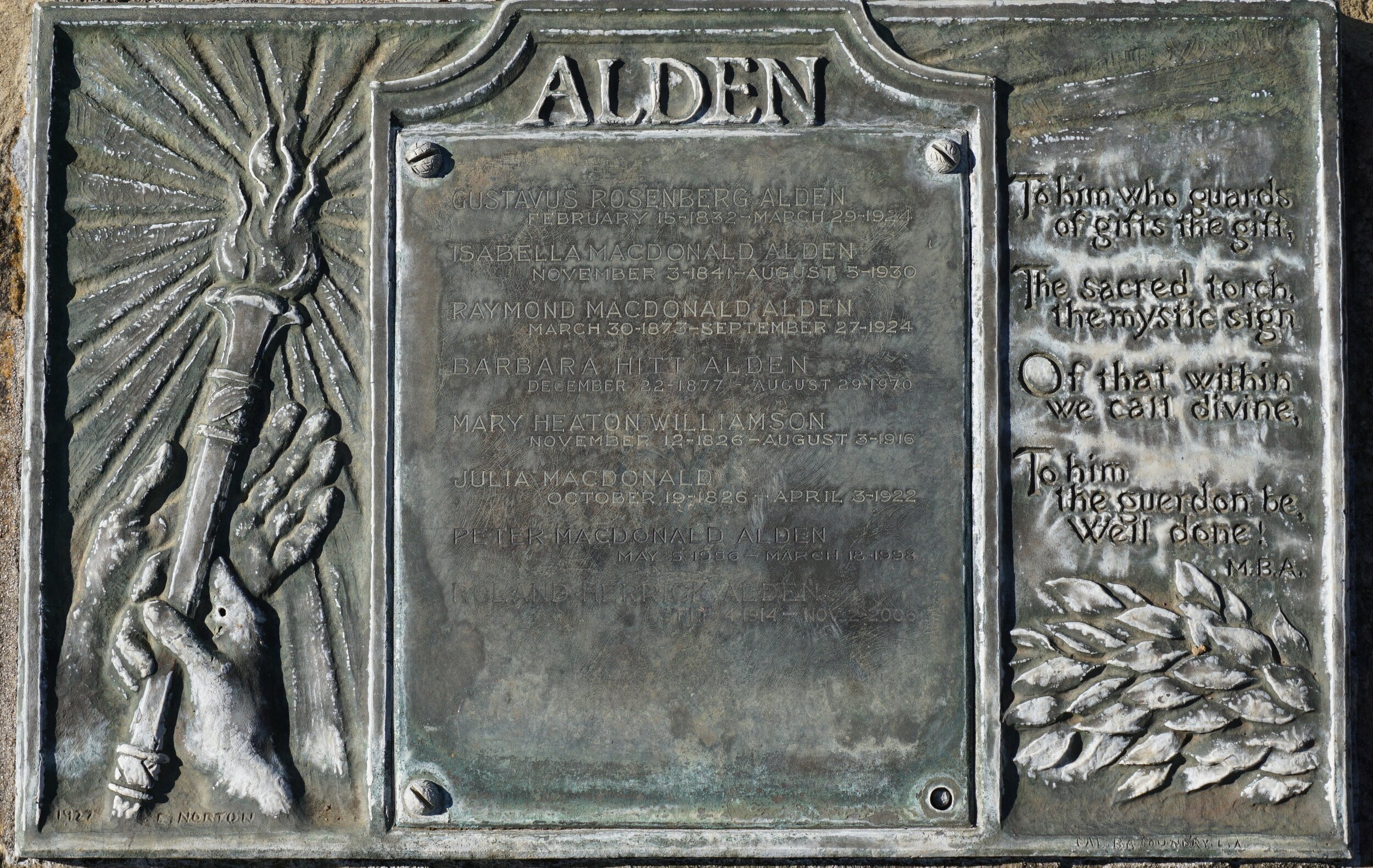 Isabella Macdonald Alden is buried at Alta Mesa Memorial Park, Palo Alto, California.