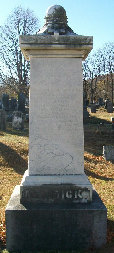 James Lyman Merrick is buried at Hillside Cemetery, Monson, Massachusetts.