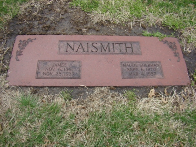James Naismith is buried at Memorial Park Cemetery, Lawrence, Kansas.