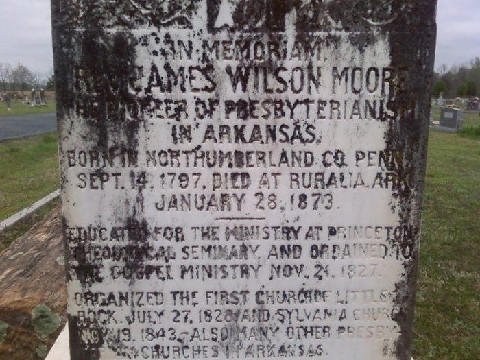 James Wilson Moore is buried at Sylvania Cemetery, Sylvania, Arkansas.