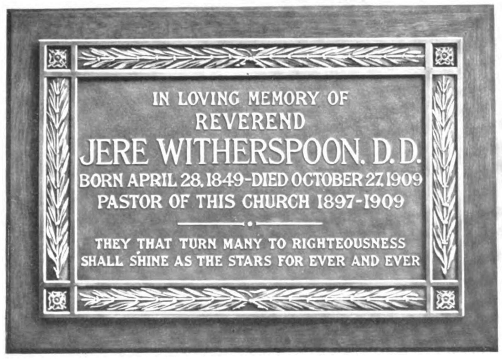 Jere Witherspoon served as pastor of the Second Presbyterian Church in Richmond, Virginia from 1897 to 1909.