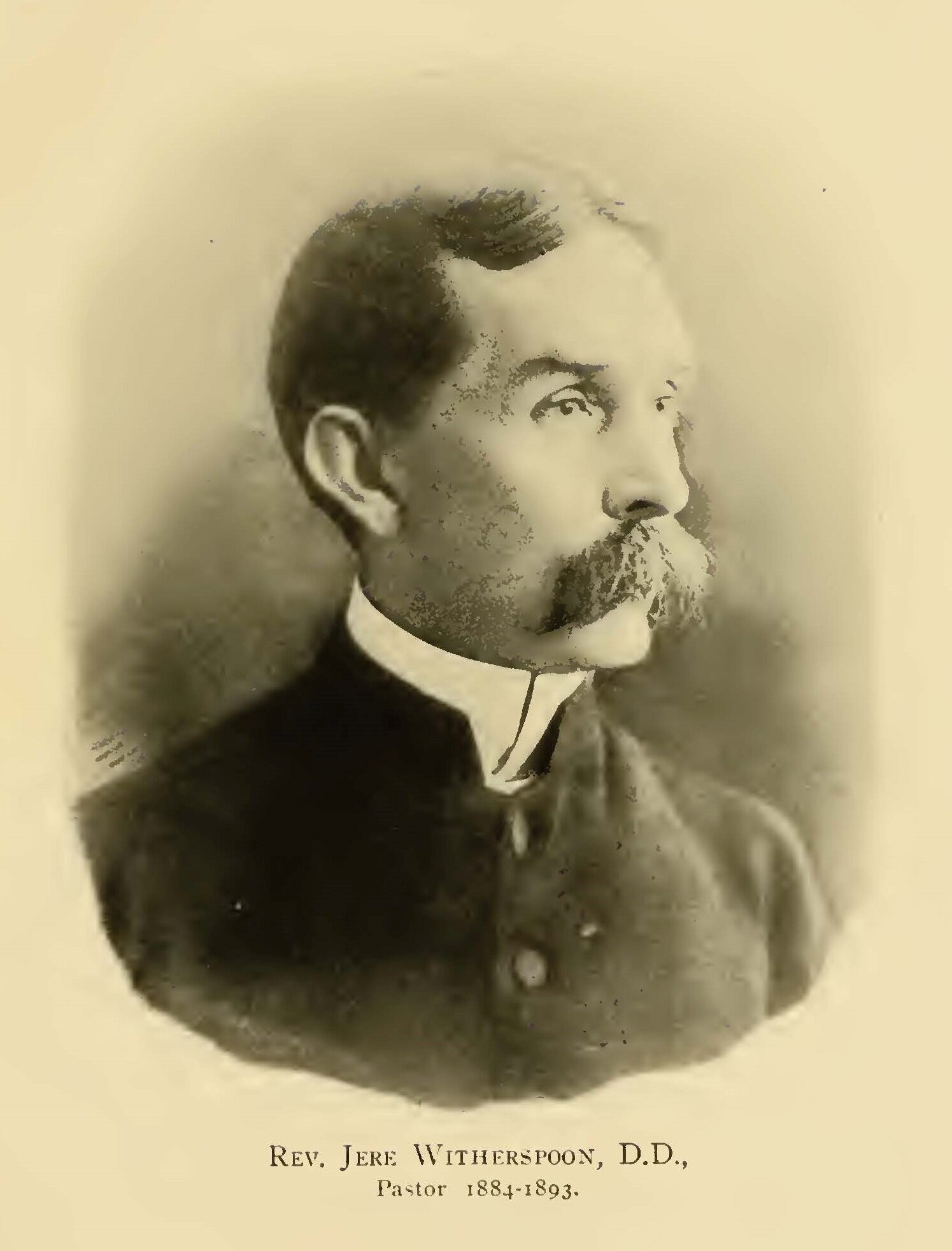 Jere Witherspoon served as pastor of the First Presbyterian Church of Nashville, Tennessee from 1884 to 1893.
