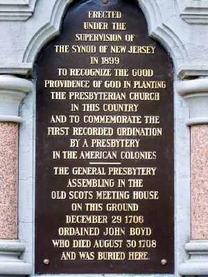 John Boyd is buried at the Old Scots Burying Ground, Marlboro, New Jersey, where a monument marks the spot and commemorates the first ordination by Presbytery in America.