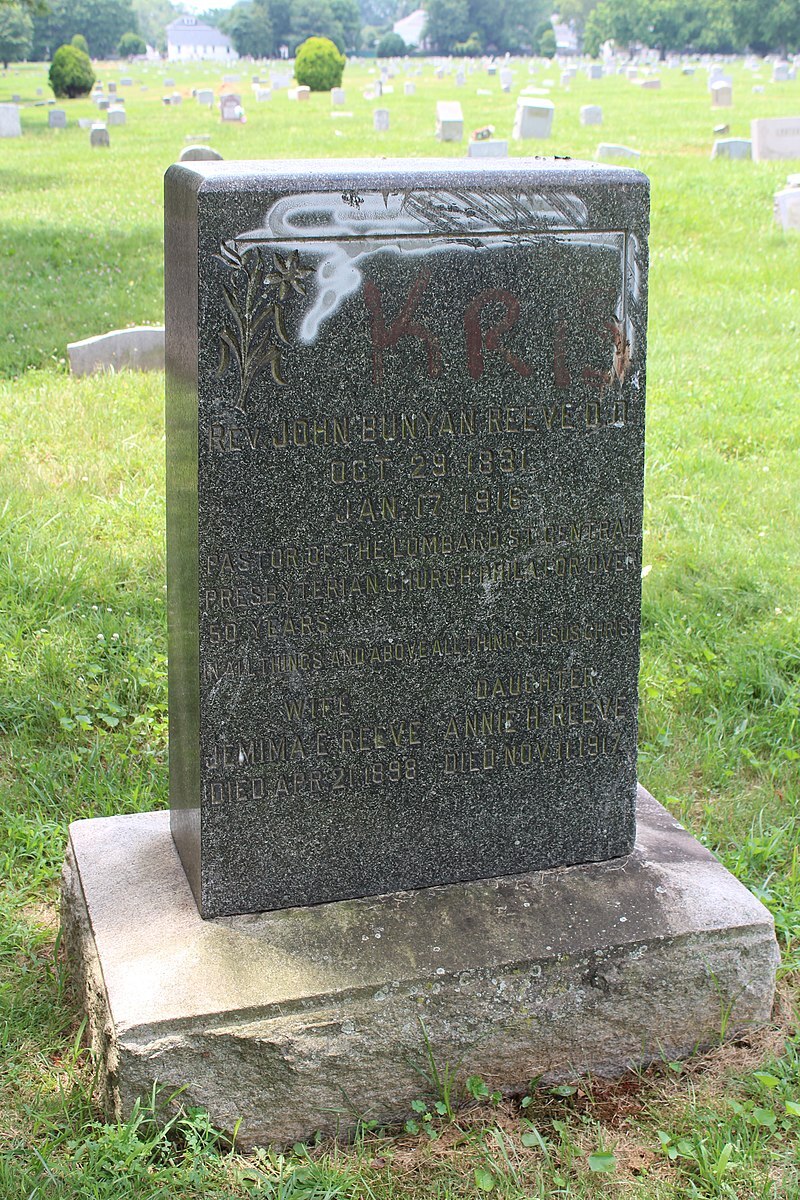 John Bunyan Reeve is buried at Eden Cemetery, Collingdale, Pennsylvania.