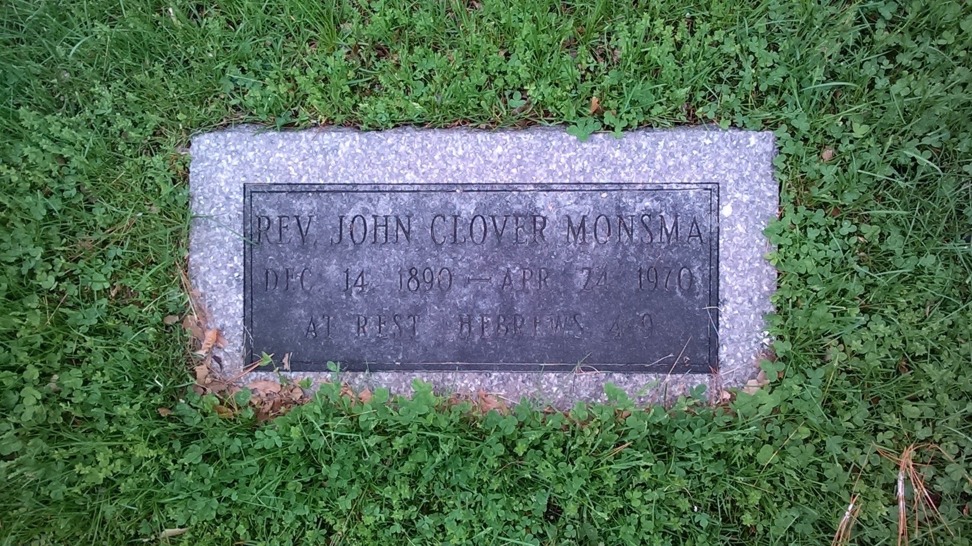 John Clover Monsma is buried at Woodlawn Cemetery, Grand Rapids, Michigan.
