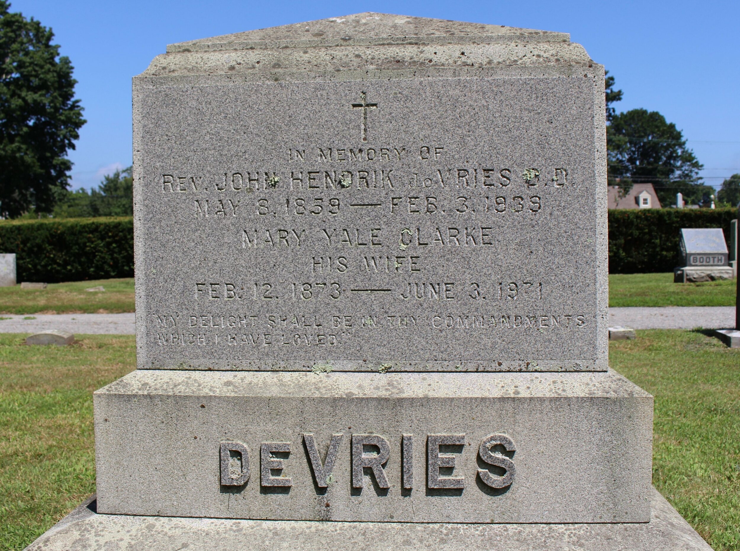 John Hendrik De Vries is buried at Cypress Cemetery, Old Saybrook, Connecticut.