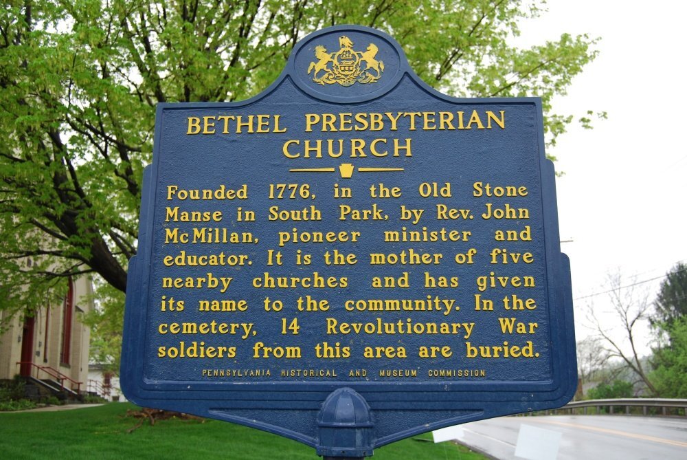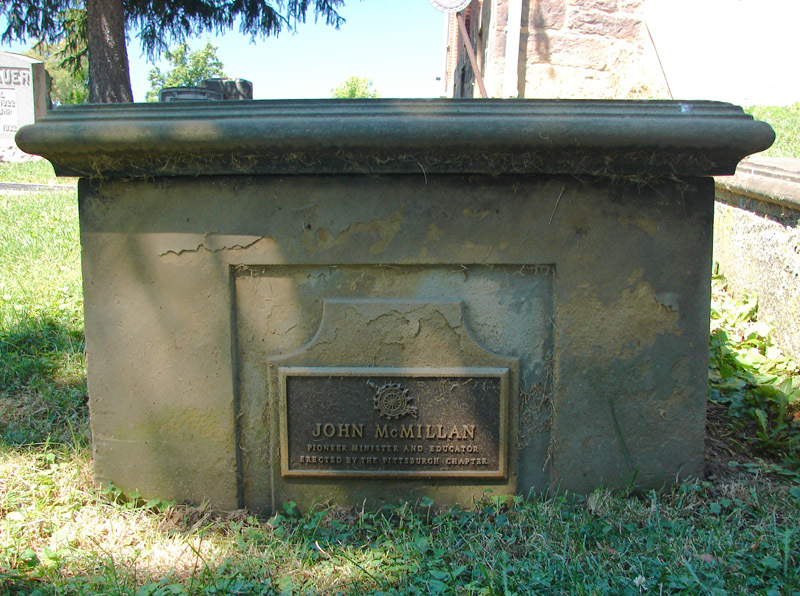 John McMillan is buried at Chartiers Hill Cemetery, Canonsburg, Pennsylvania.John McMillan’s Log School, built in the 1780s, is located in Canonsburg, Pennsylvania.Historical marker for the Bethel Presbyterian Church in Bethel Park, Pennsylvania, which was founded by John McMillan in 1776.The John McMillan statue by Alexander Stirling Calder, located at the Presbyterian Historical Society, Philadelphia, Pennsylvania.
