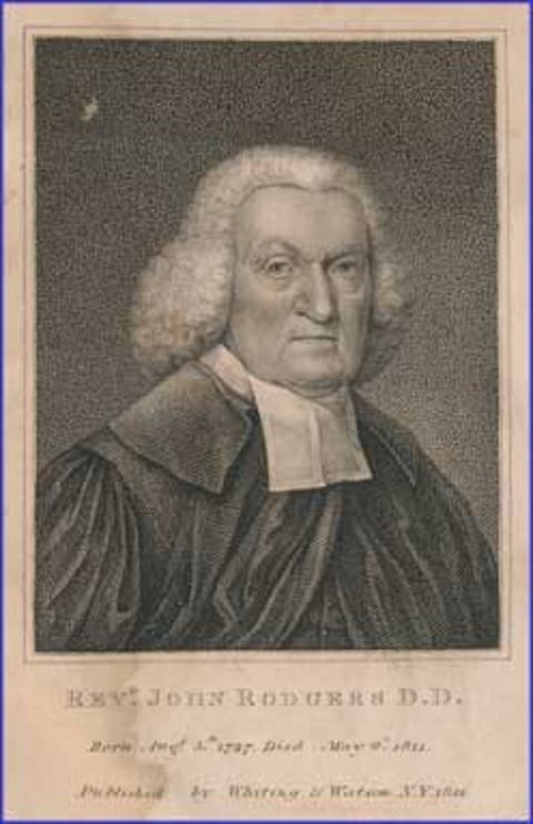 John Rodgers (1727 – 1811) was an American Presbyterian clergyman, educator, and early church leader who served as pastor in Philadelphia and was a founding figure of the Presbyterian Church in the United States, helping to organize its first permanent governing structures after the American Revolution. Renowned for his preaching, teaching, and commitment to evangelical piety, he also played a key role in establishing several Presbyterian institutions and mentoring the next generation of ministers.