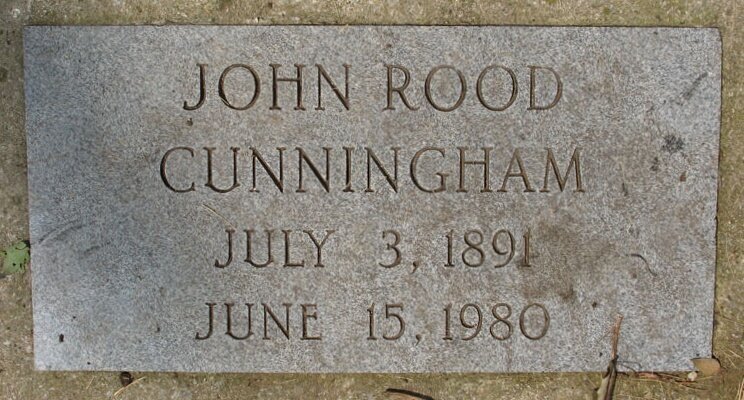 John Rood Cunningham is buried at Davidson College Cemetery, Davidson, North Carolina.