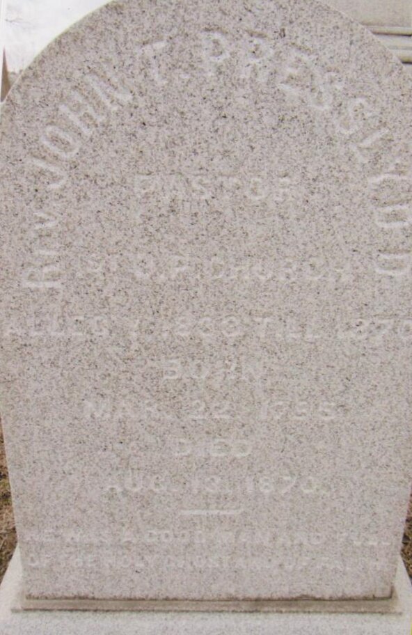 John Taylor Pressly is buried at Union Dale Cemetery, Pittsburgh, Pennsylvania.