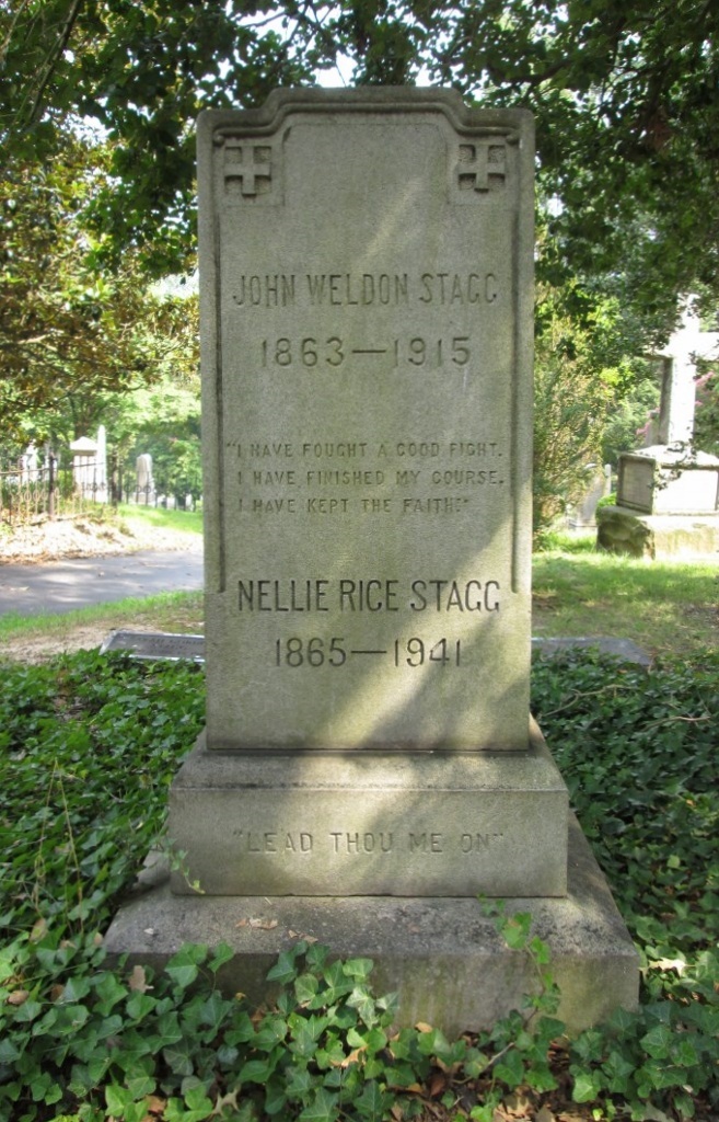 John Weldon Stagg is buried at Hollywood Cemetery, Richmond, Virginia. Although varying accounts are given of his birth year, it is believed that he was born on August 17, 1864.