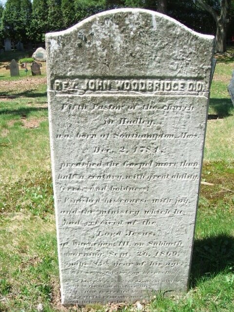 John Woodbridge is buried at Old Hadley Cemetery, Hadley, Massachusetts.