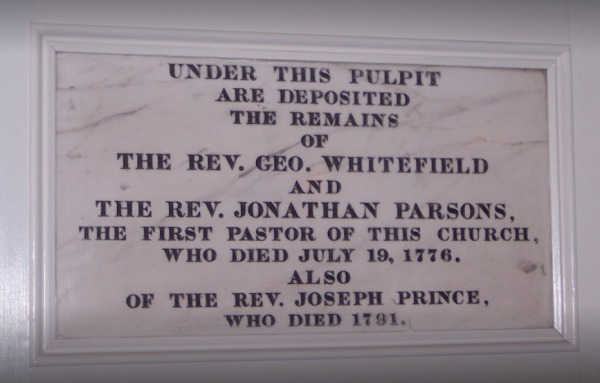 Jonathan Parsons is buried, along with George Whitefield and Joseph Prince, inside the Old South Presbyterian Church in Newburyport, Massachusetts.The home of Jonathan Parsons in Newburyport, Massachusetts, where George Whitefield preached his last sermon and died the following day.Jonathan Parsons served as the first pastor of Old South Presbyterian Church in Newburyport, Massachusetts from 1746 until his death in 1776.