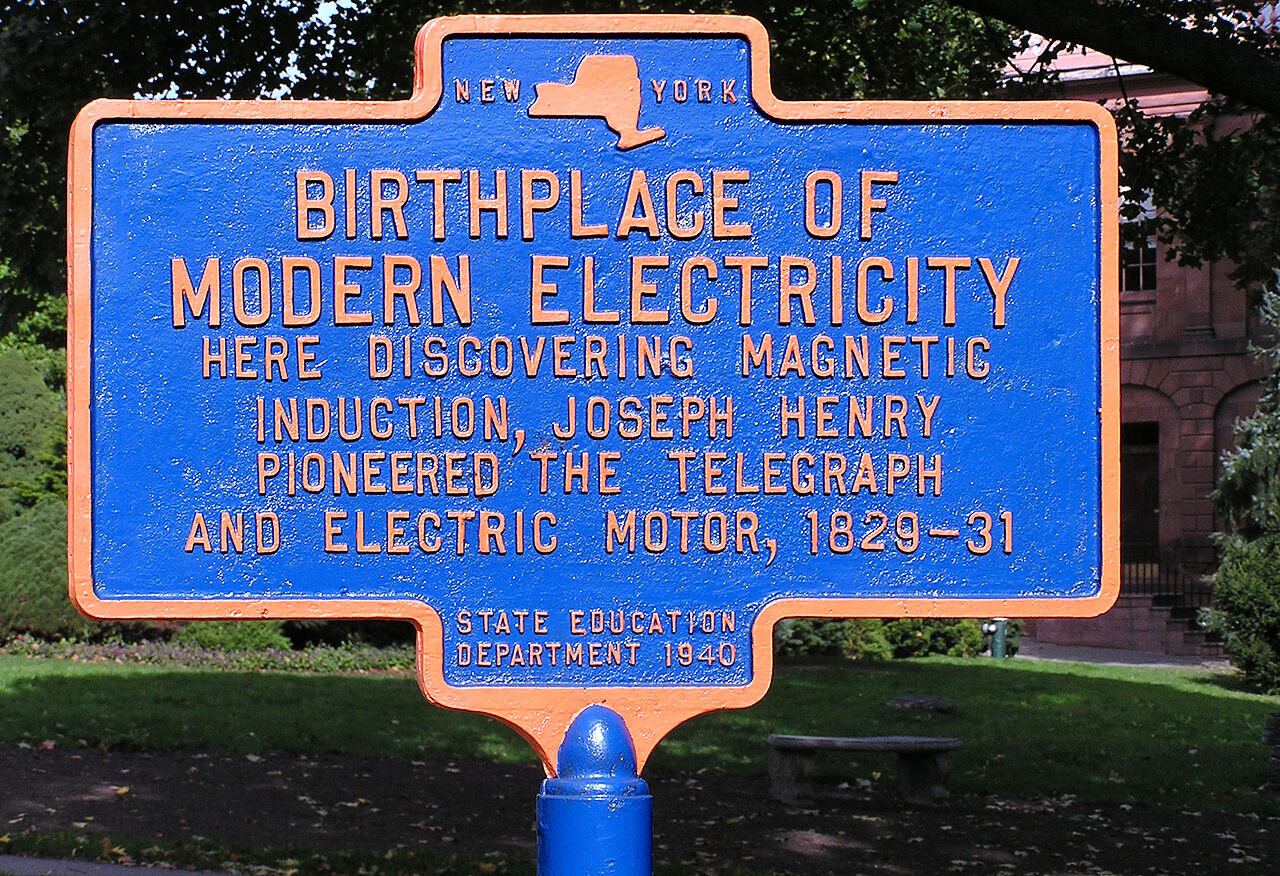 Joseph Henry is buried at Oak Hill Cemetery, Washington, D.C.Statue of Henry in front of the Smithsonian Museum, Washington, D.C.The Joseph Henry House at Princeton, New Jersey.Historical marker in Academy Park (Albany, New York) commemorating Henry’s work with electricity.