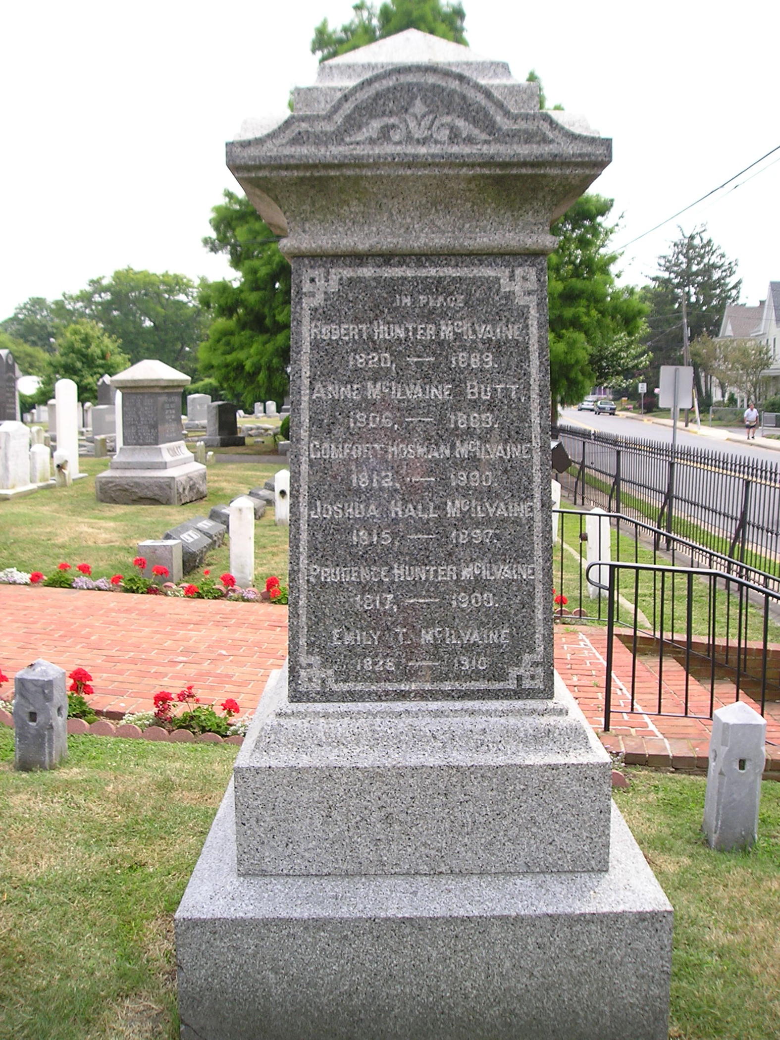 Joshua Hall McIlvaine is buried at Lewes Presbyterian Church Cemetery, Lewes, Delaware.
