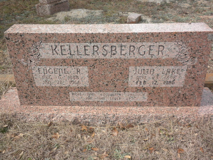 Julia Lake Skinner Kellersberger is buried at Cypress Mill Cemetery, Cypress Mill, Texas.