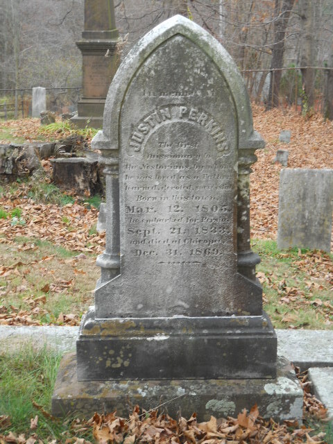 Justin Perkins is buried at Rock Valley Cemetery, Holyoke, Massachusetts.