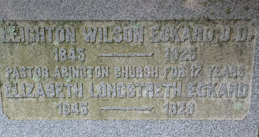 Leighton Wilson Eckard is buried at Abington Presbyterian Church Cemetery, Abington, Pennsylvania.