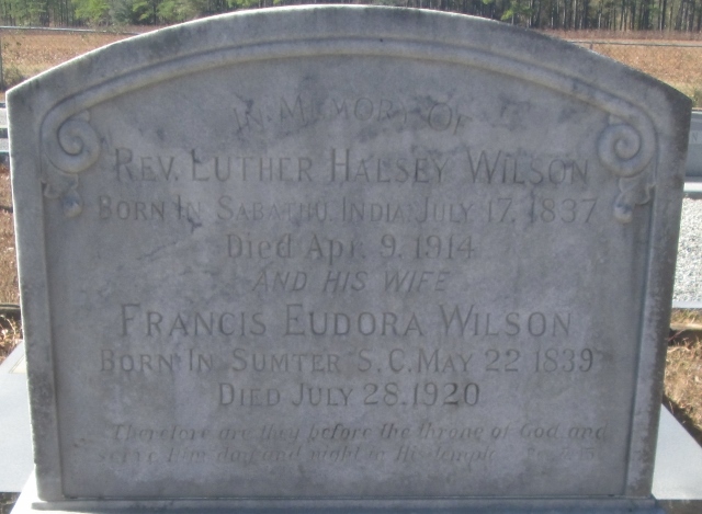 Luther Halsey Wilson is buried at Old Dickey Presbyterian Cemetery, Calhoun County, Georgia.