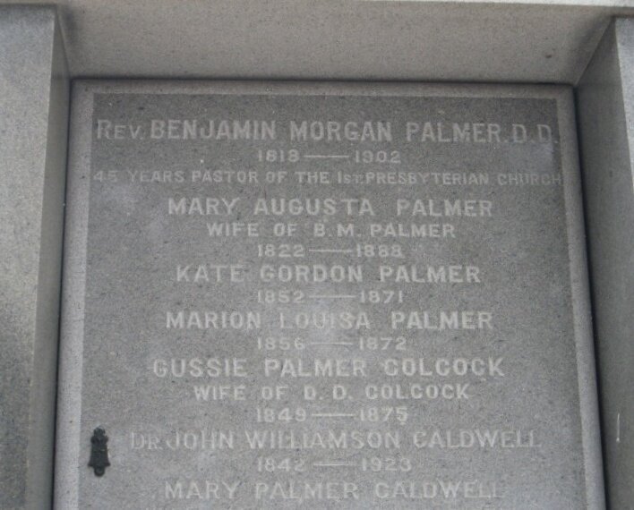 Mary Augusta McConnell Palmer is buried at Metairie Cemetery, New Orleans, Louisiana.