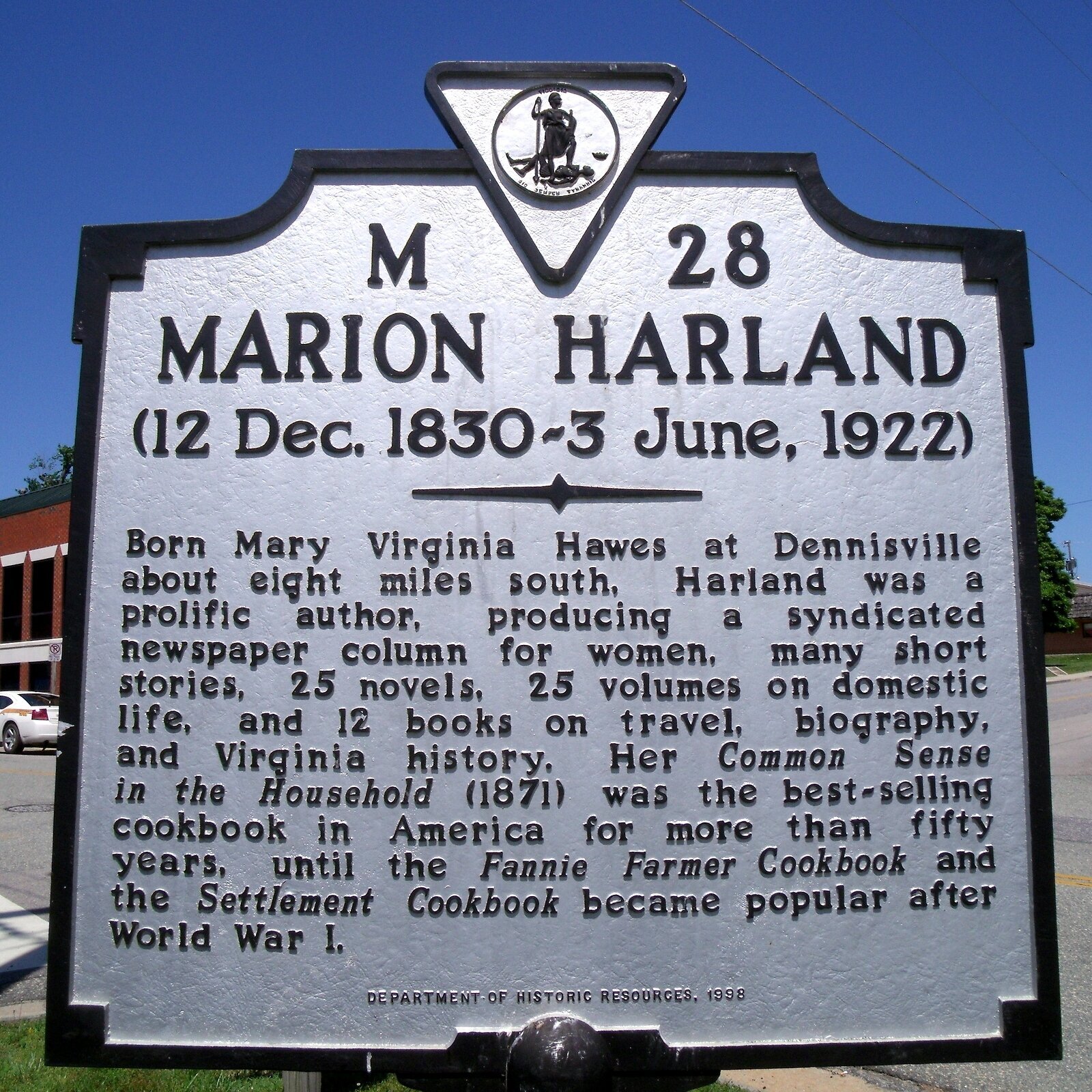 Mary Virginia Hawes Terhune is buried at Pompton Reformed Church Cemetery, Pompton Lakes, New Jersey.This historical marker is located in Amelia Court House, Virginia.The Hawes House in Richmond, Virginia, where Mary Virginia Hawes Terhune once lived.