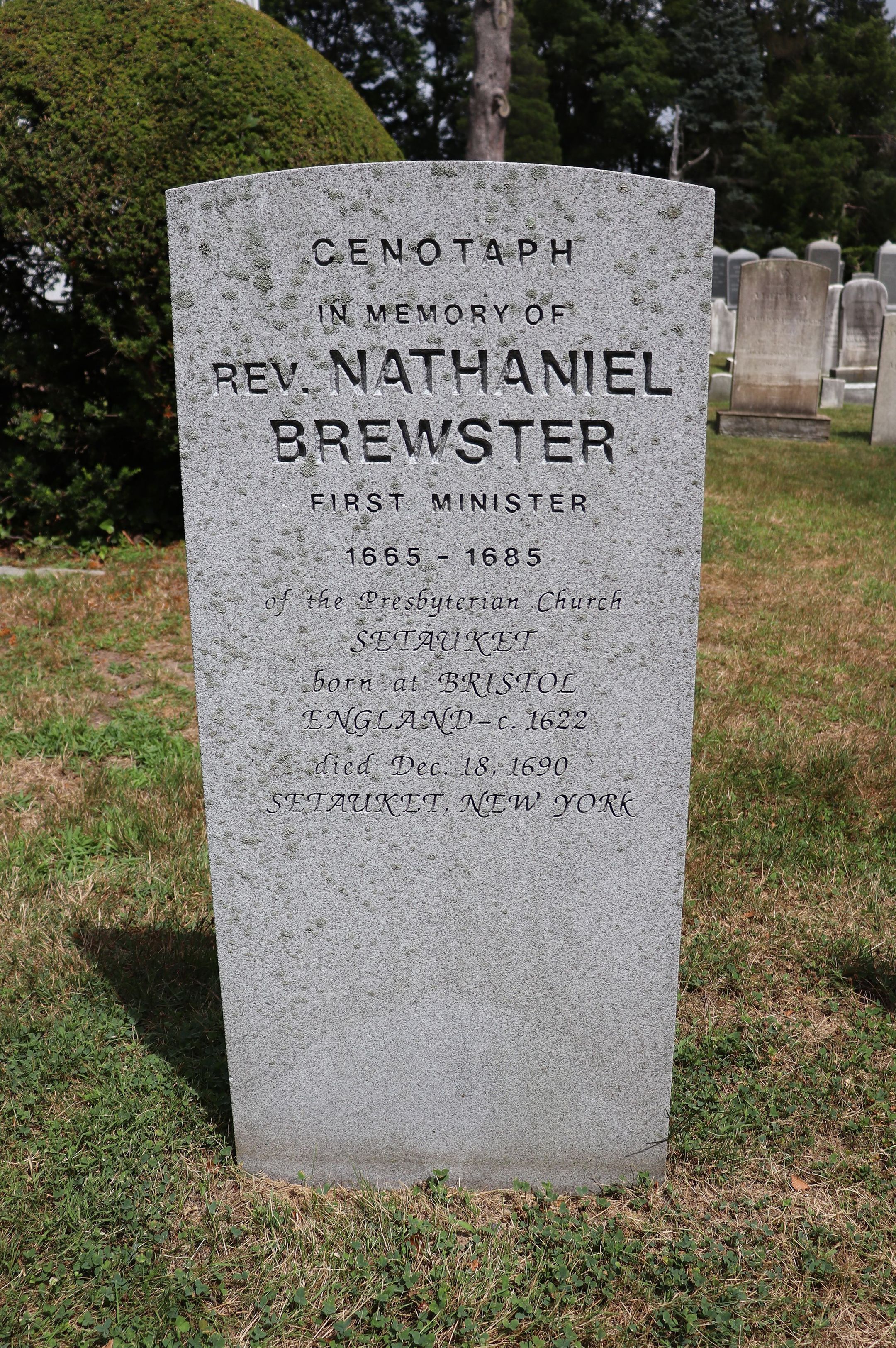 Nathaniel Brewster is buried at the Setauket Presbyterian Church Cemetery, Setauket, New York.