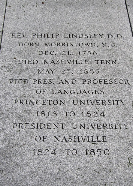 Philip Lindsley is buried at Mount Olivet Cemetery, Nashville, Tennessee.