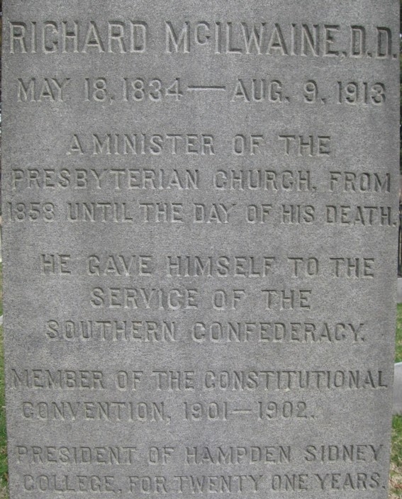 Richard McIlwaine is buried at Blandford Cemetery, Petersburg, Virginia.