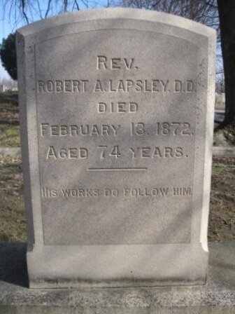 Robert Armstrong Lapsley is buried at Fairview Cemetery, New Albany, Indiana.