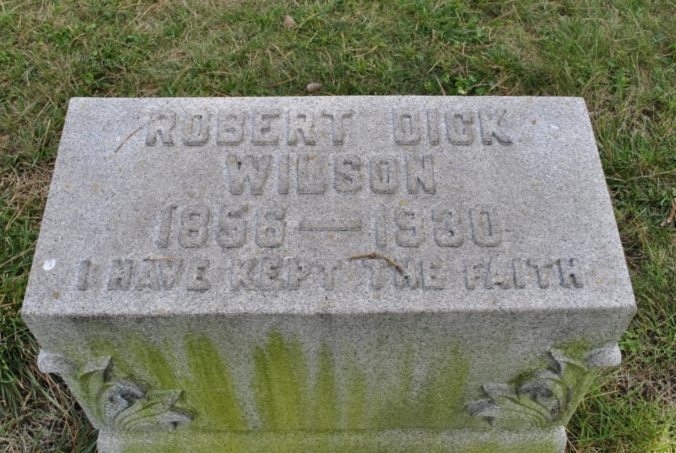 Robert Dick Wilson is buried at Oakland Cemetery and Mausoleum, Indiana, Pennsylvania.