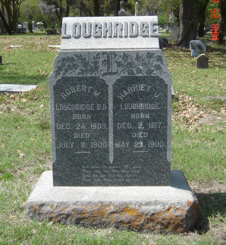 Robert McGill Loughridge is buried at Calvary Cemetery, Marlin, Texas.