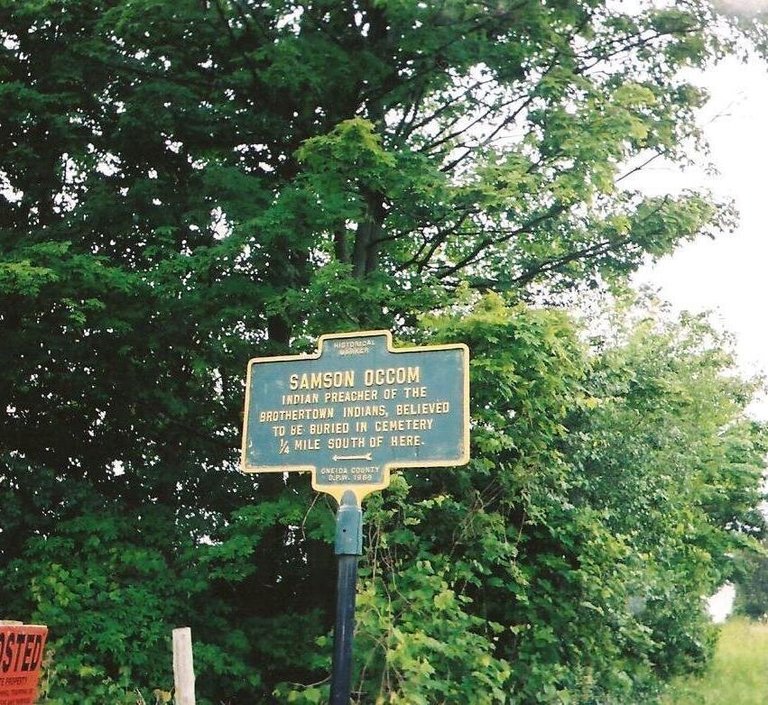 Samson Occom is buried at Occum Grove Burial Grounds, Marshall, New York.