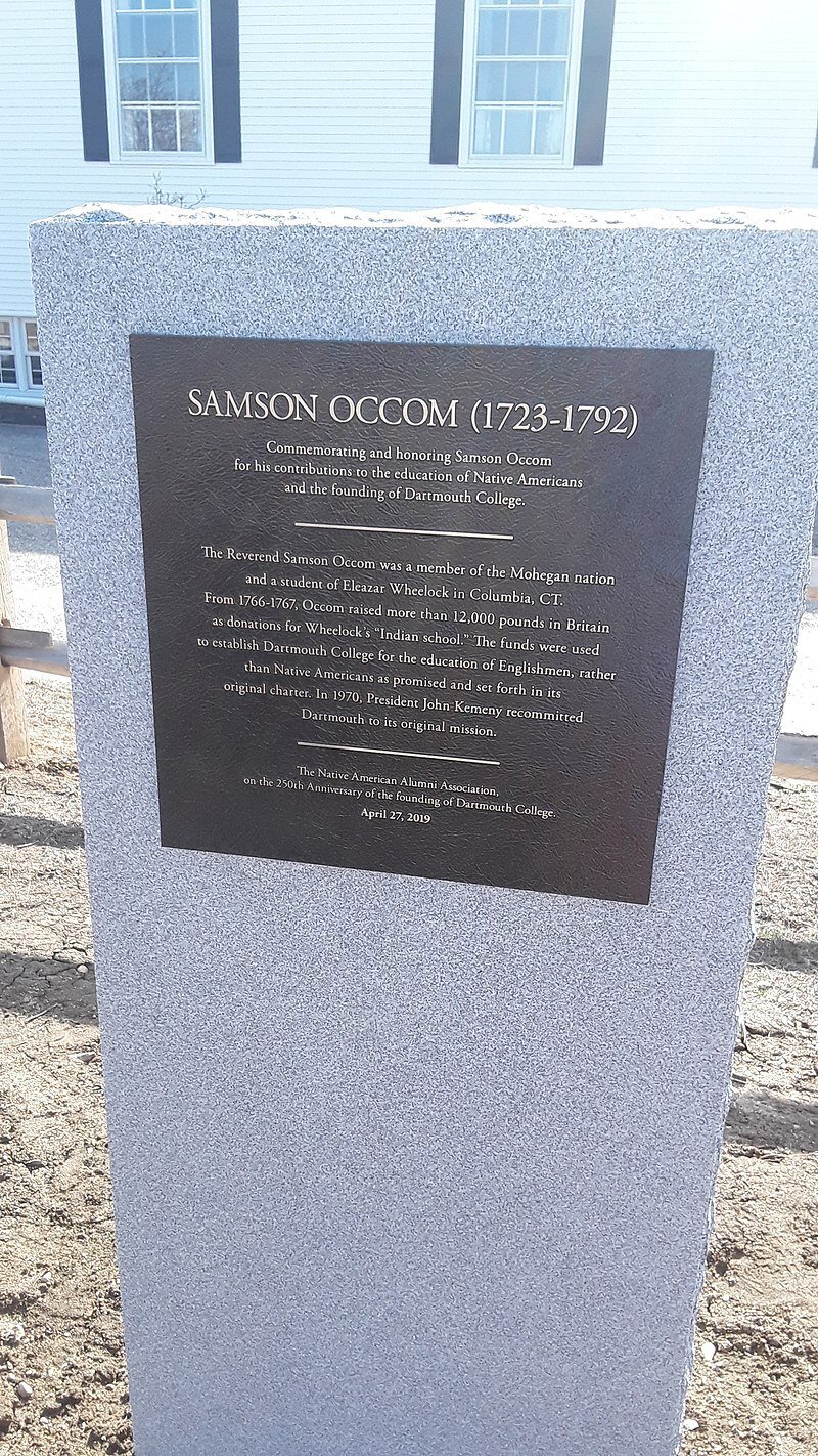 Memorial to Samson Occom, Moor’s Charity School, Columbia, Connecticut.